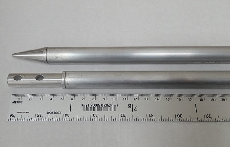 Made exclusively in Maine for Avinet. These poles are made from lightweight aluminum that come in sets containing 4 (four) top/middle sections and 2 (two) pointed bottom sections to erect one mist net. Extra tops and bottoms can be purchased separately if needed. The pole is 19mm (.75") in diameter and assembled height is 2.84m (9.3ft) and each set weighs approximately 3.6lbs. The bottom section measures at ~40" long and the top section measures in ~38" long.
